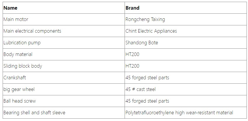 The main components of the punch press are mostly made of high-strength castings, and the whole machine is composed of a body, large gears, pulleys, crankshafts, connecting rods, transmission shafts, clutches, sliders, and other parts. The drive shaft transmits the power of the electric motor to the pulley, and drives the crankshaft to rotate through the clutch of the clutch, thereby causing the slider to move up and down. When it reaches the bottom dead center, it generates the maximum pressure to achieve the stamping of the workpiece. The slider guide rail has been finely ground by a grinder to increase stamping accuracy and improve its service life. The punch press is equipped with a well-known set of electrical appliances and centralized lubrication by an oil pump.